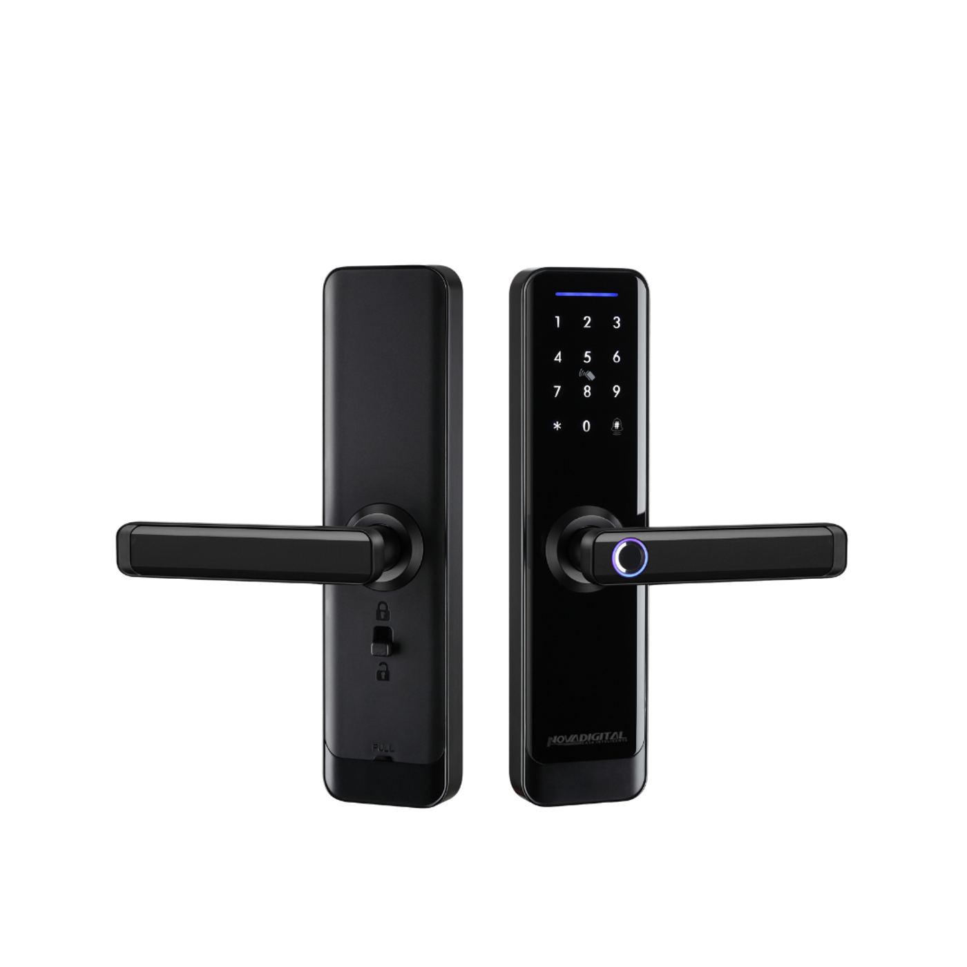 Fechadura inteligente Zigbee da NovaDigital, com um alto nível de segurança e leitor de digital, ela possui 4 modos de desbloqueio: impressão digital, cartão de acesso, senha numérica e chaves.
